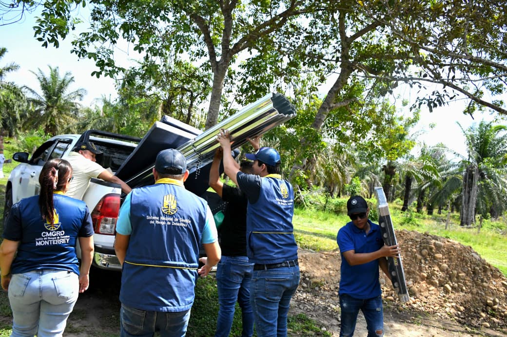 La atención fue coordinada desde Gestión del Riesgo y Acción Social departamental, en articulación con la Alcaldía de Monterrey, la empresa de Servicios Públicos EPM y el concejal Mauricio Amezquita. La ayuda entregada incluyó láminas de zinc, kits de alimentos, elementos de aseo, colchonetas, cobijas, hamacas, juego de ollas, tinas, vajilla, mesas, sillas, kits escolares y materiales destinados a la reparación y mejoramiento de la vivienda afectada.