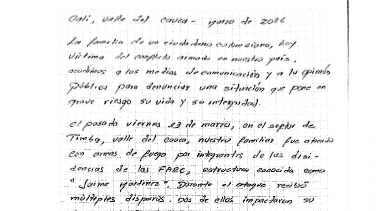 La carta, que ha circulado con fuerza en redes sociales, expone el temor diario que viven los habitantes tanto en la zona urbana como en los corregimientos rurales. Los firmantes denuncian que la presencia de grupos al margen de la ley ha sobrepasado los controles actuales, dejando a las familias en medio de un fuego cruzado que parece no tener fin.