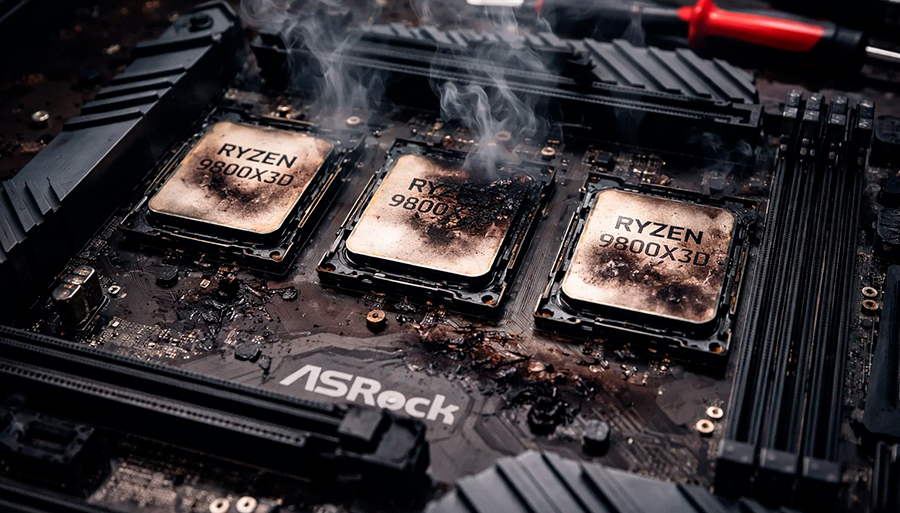 ¡Ojo, gamers! Reportan caso viral de tres procesadores Ryzen 9800X3D ‘quemados’ en una misma placa ASRock